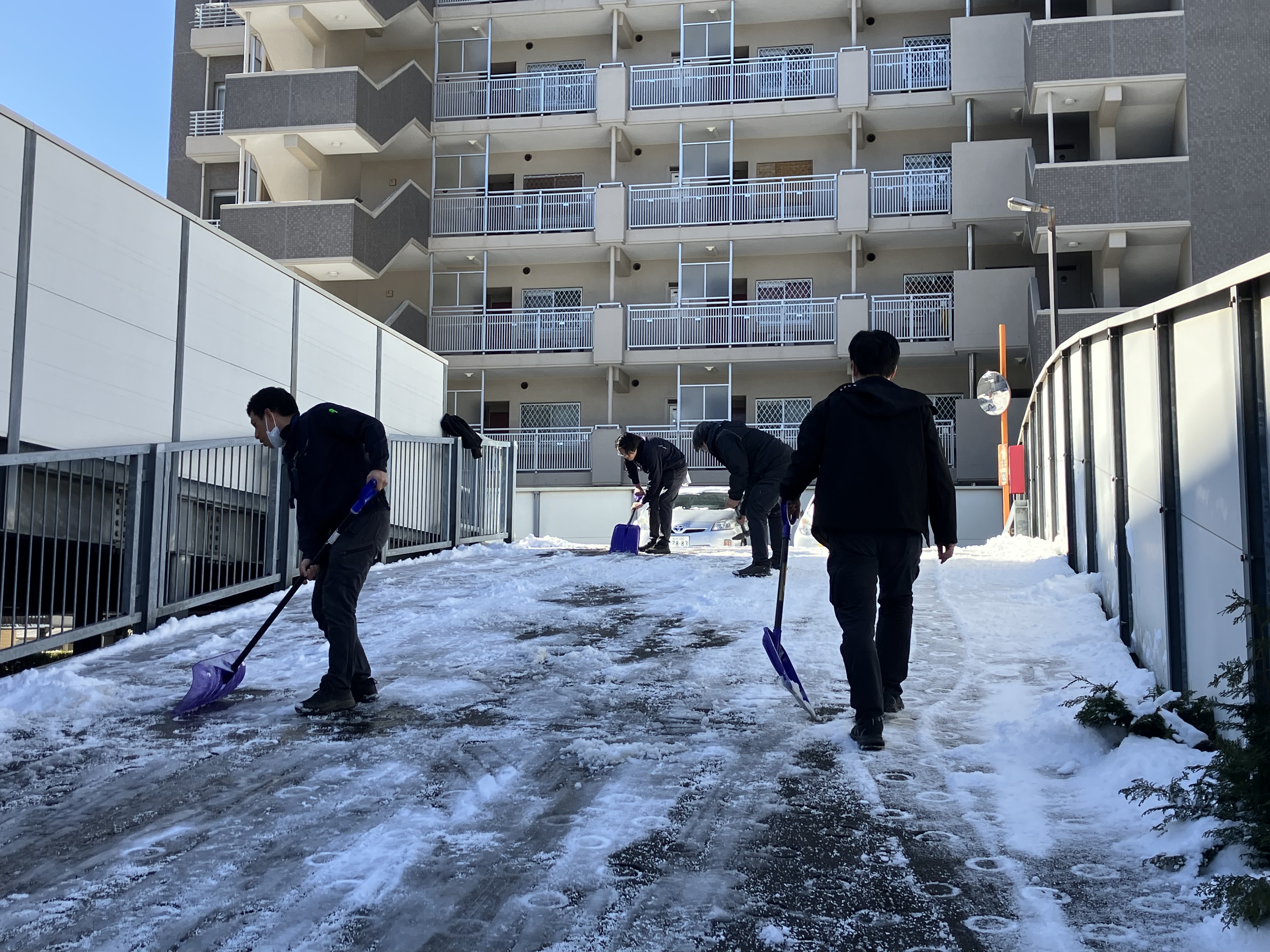 今朝、レーベンコーポレーションでも雪かきを行いました。