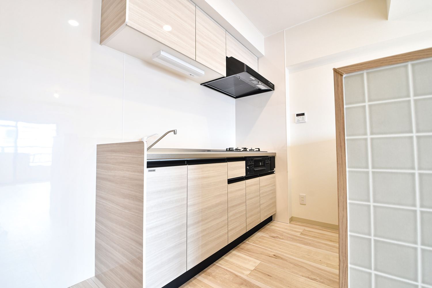 ドアにはガラス入りのデザインを採用することで抜け感をプラスし、洗練された住まいの印象を演出。さらに、新たに設けたLDKと洋室の間には引分け戸を設置し、開ければ広々とした一体空間に、閉めれば落ち着いた個室として使い分けが可能です。
